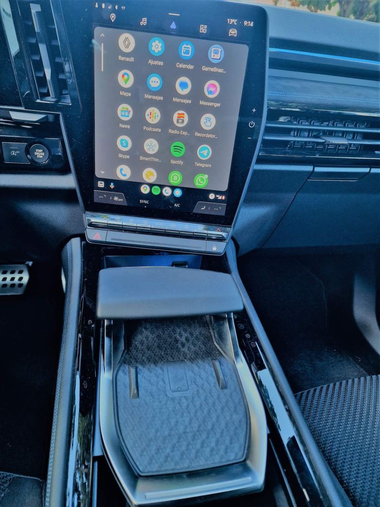 El diseño interior de Nuevo Austral también se distingue por su «consola gran confort». Moderna y ordenada, delimita sutilmente la zona del conductor y del acompañante. La consola cuenta con un reposamanos deslizante para poder utilizar cómodamente la pantalla multimedia. También cuenta con una ranura específica para el smartphone con un cargador de inducción y un práctico espacio de almacenamiento para el día a día.