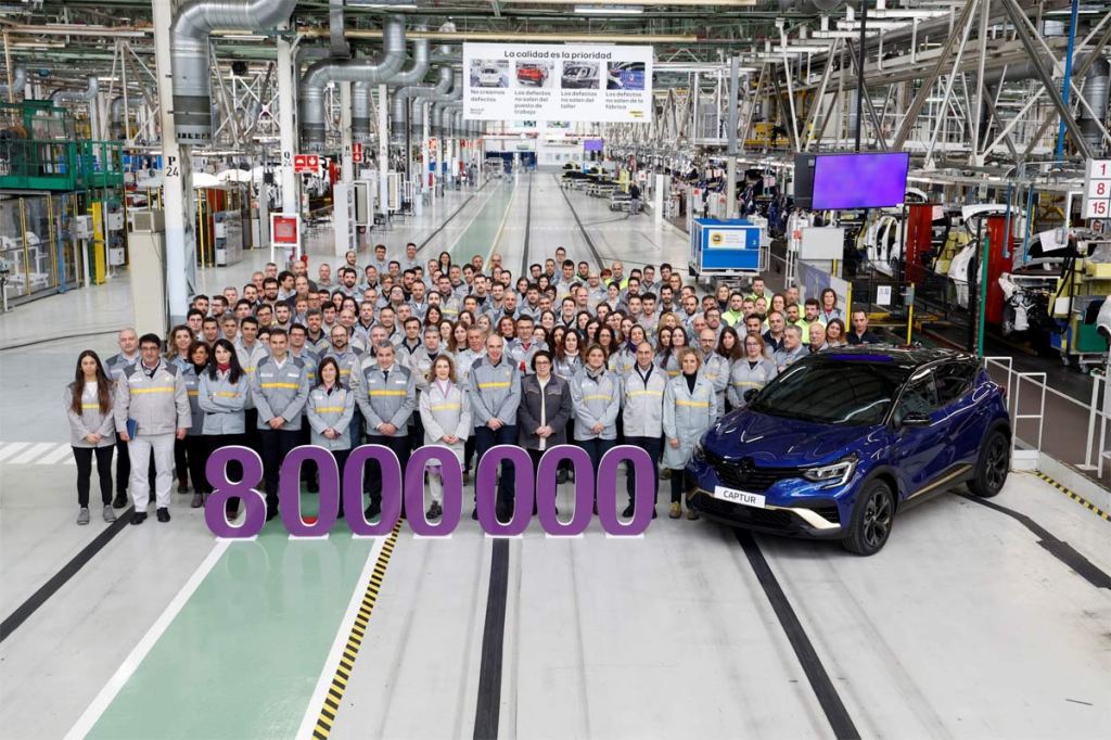 La unidad ocho millones de la actual Factoría de Valladolid ha salido esta mañana de la línea de producción. Se trata de un Renault CAPTUR E-Tech engineered, full hybrid E-Tech full hybrid 105 KW(145CV) bitono, color azul rayo con techo negro. Se trata de una nueva versión con personalidad única, que se expresa a través de la calandra y del faldón trasero negro brillante que veremos circular por las carreteras de nuestro país y que tendrá como destino un cliente español.