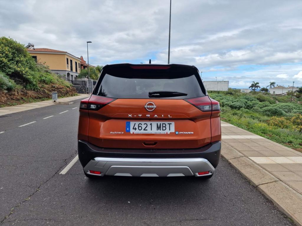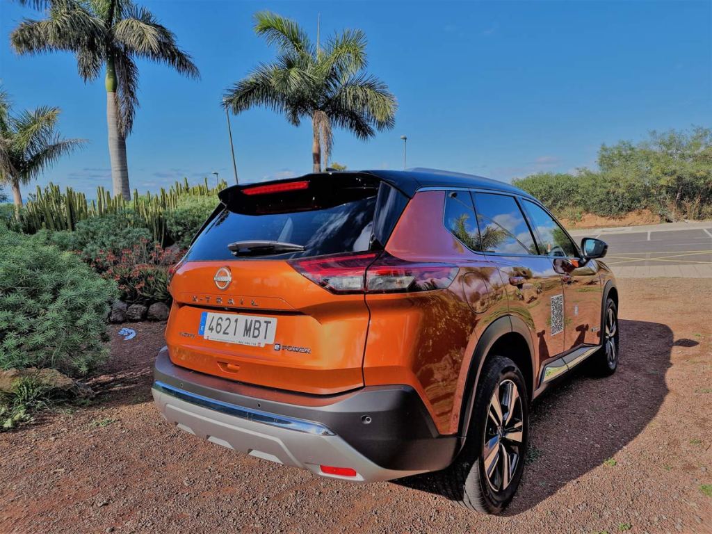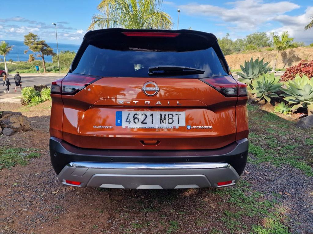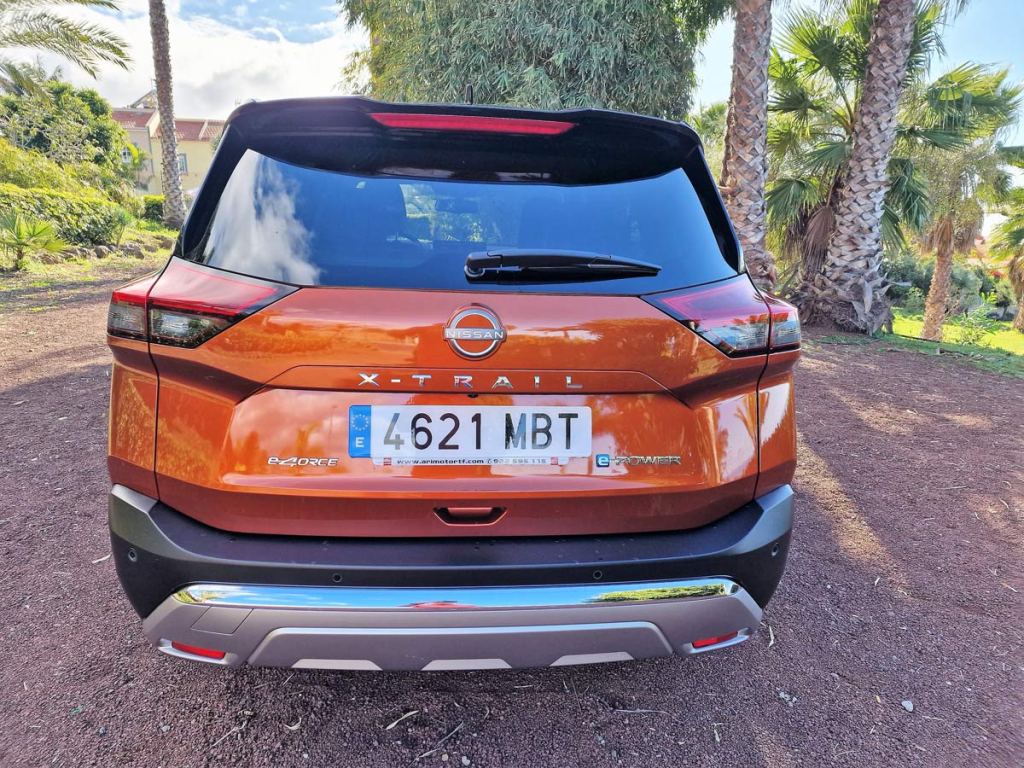 Por detrás, una línea horizontal se sitúa justo por encima y por debajo de la matrícula, mientras que los faros traseros divididos garantizan una amplia apertura del maletero. Un embellecedor plateado bajo el parachoques trasero, resalta el carácter aventurero del X-Trail.
