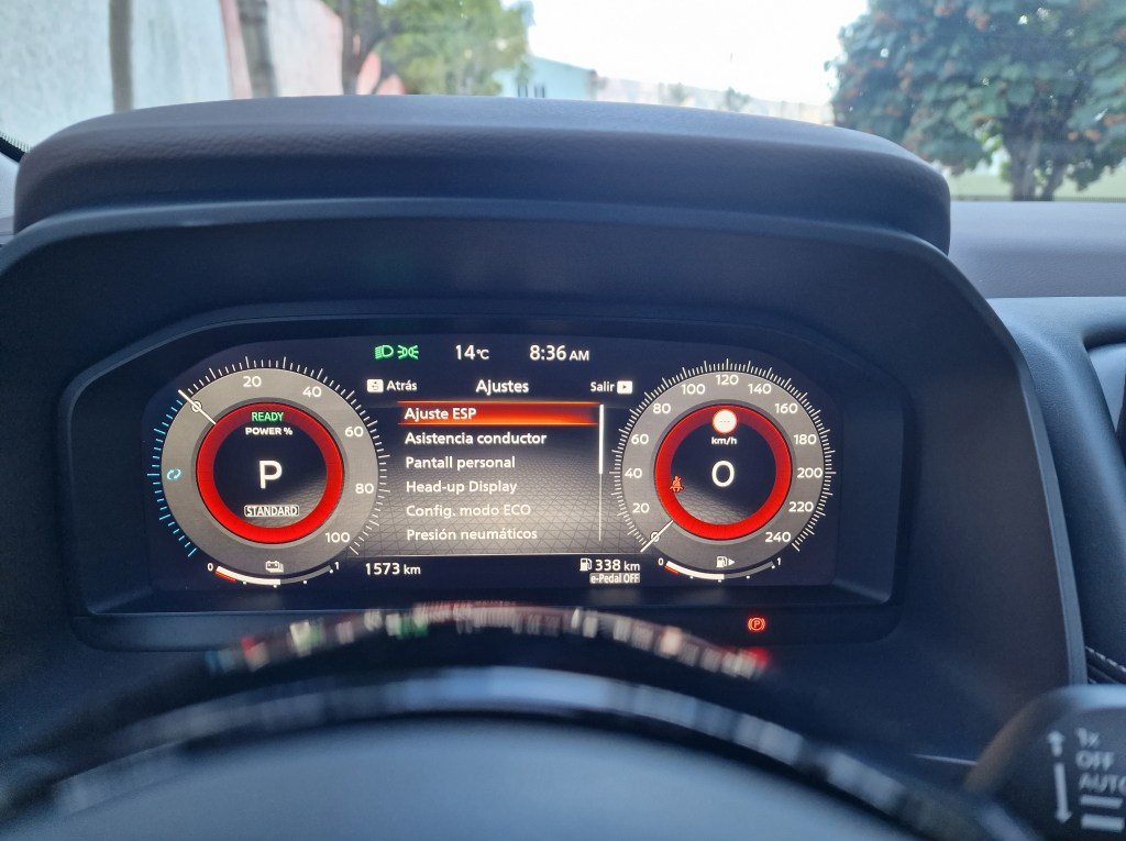 Una nueva pantalla de información múltiple TFT de 12,3 pulgadas de alta definición y completamente digital ofrece una selección de diseños personalizables para mostrar información sobre la navegación, entretenimiento, el tráfico o el propio vehículo, y todo ello controlado desde un nuevo control rediseñado situado en el volante. También se ha añadido una textura de vidrio tallado tradicional «Kiriko» al fondo digital de la pantalla TFT: todo un guiño al ADN japonés de Nissan.