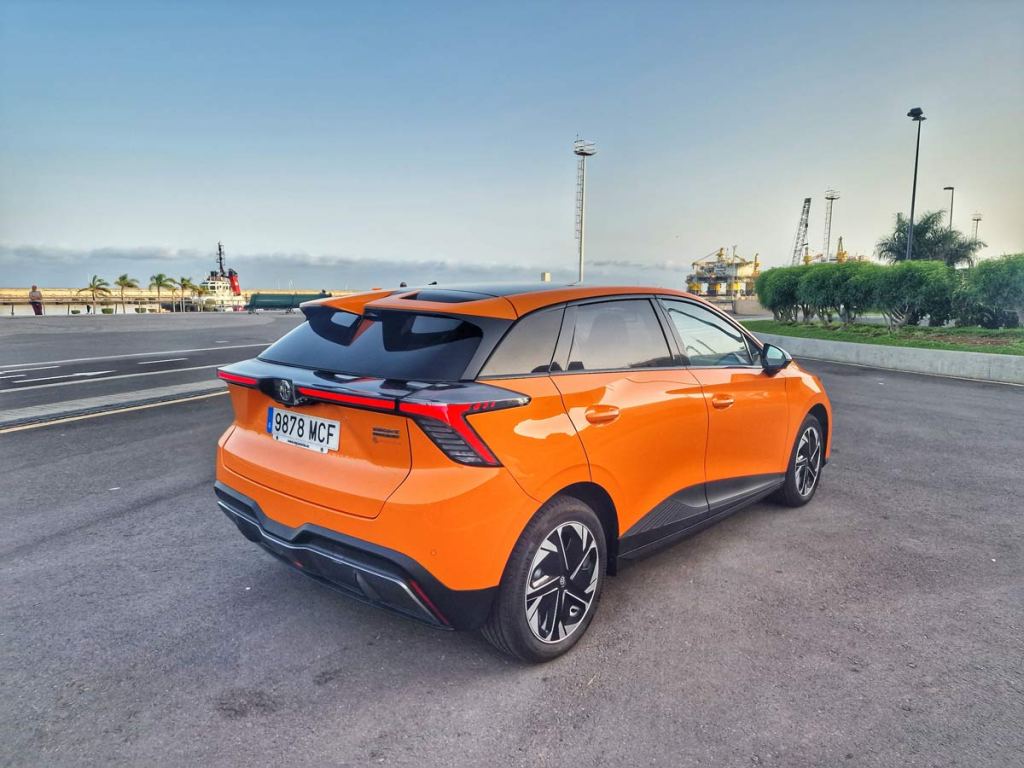 El MG4 Electric con el acabado Luxury, objeto de nuestra prueba dinámica por las carreteras de Tenerife, tiene propulsión trasera, una respuesta rápida al pedal del acelerador, un tacto preciso del tren delantero, un reparto de pesos muy equilibrado y un bajo centro de gravedad, por la ubicación de su sistema de baterías en el centro de la plataforma MSP. Este modelo emplea un eje delantero MacPherson y una sofisticada suspensión de cinco brazos para el eje trasero.