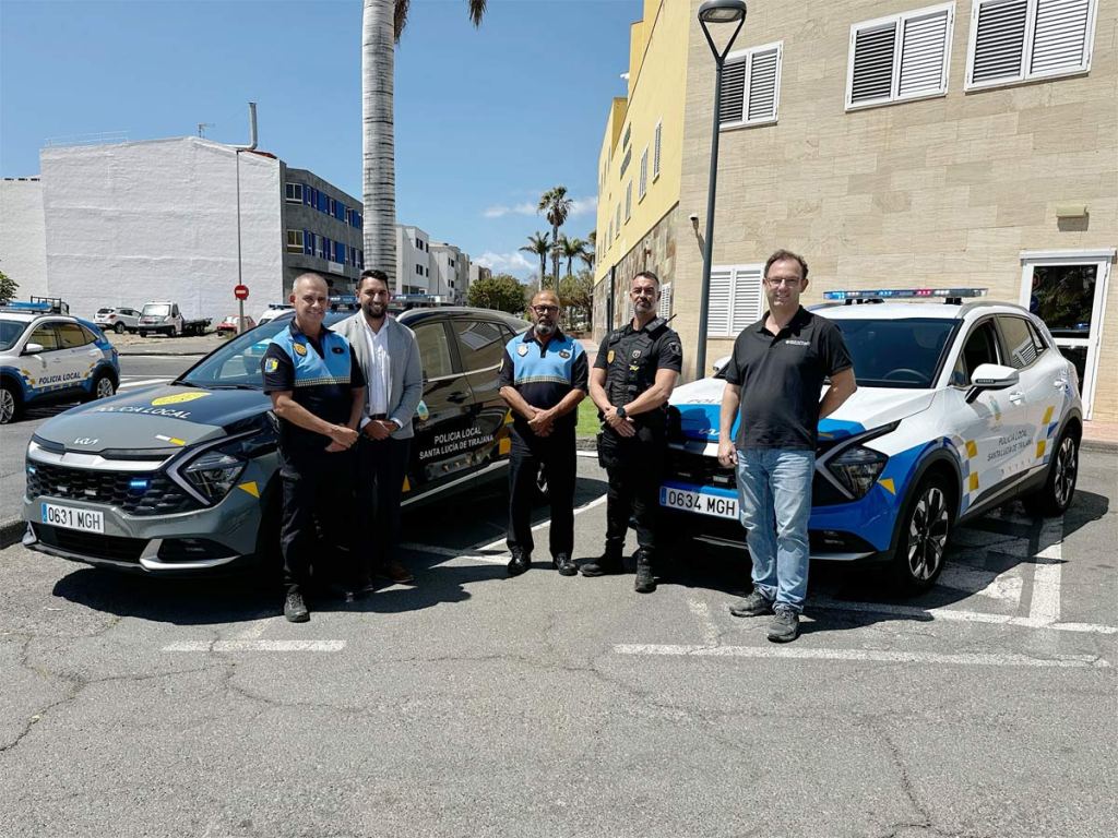 I La Policía Local de Santa Lucía de Tirajana ha recibido sendas unidades de Kia Niro PHEV (Híbrido enchufable) de manos de Alexander Cruz, responsable de Flotas de Arimotor Canarias, junto al representante de Carrocerías DiazCutillas, que ha sido la empresa encargada de ejecutar la adaptación a vehículo policial, acompañados por el comisario jefe, el coordinador y un policía local, como representantes del cuerpo de seguridad del sur grancanario.