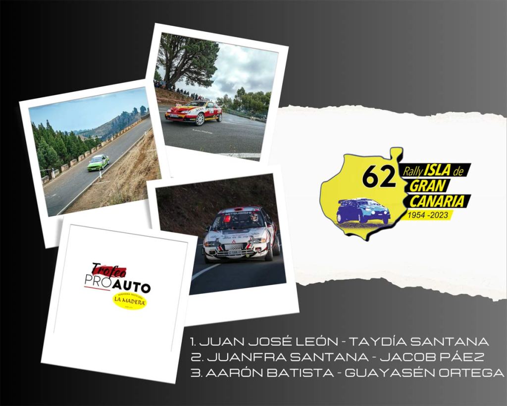 Fueron diez los equipos que disputaron el Trofeo ProAuto Panadería La Madera en el Rally Isla de Gran Canaria, donde el ritmo lo marcó durante ambas jornadas el equipo formado por Juan José León y Taydía Santana a bordo del Renault Megane Coupé que solo cedió ante Juanfra Santana y Jacob Páez y el BMW 325i E30 en dos tramos cronometrados pero logrando mantener el liderato desde San Lorenzo y ganando, además, el Grupo TA con un excelente séptimo puesto de la Clasificación General.