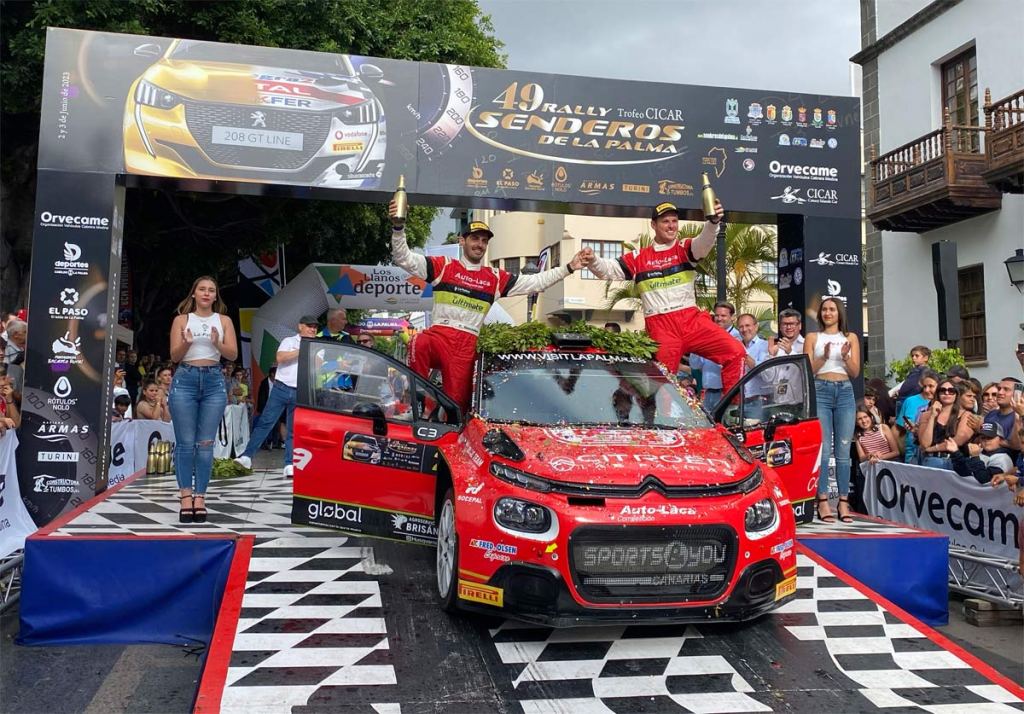 A los mandos de su Citroën C3 Rally2, el piloto palmero y el copiloto grancanario lideraron la prueba de principio a fin.