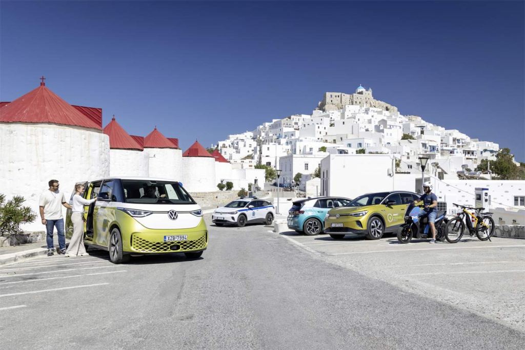 La isla de Astypalea es un laboratorio de movilidad inteligente y sostenible. Como parte de un proyecto conjunto del Grupo Volkswagen y la República Helénica, se convertirá progresivamente a la movilidad eléctrica, las soluciones digitales de movilidad y la energía verde. Los primeros resultados son positivos: Las nuevas soluciones digitales de movilidad se han implantado correctamente, ya que el 25% de los habitantes utiliza regularmente el servicio de transporte compartido ASTYBUS. Sólo en los últimos doce meses se han recorrido más de 200.000 kilómetros. La electrificación también avanza: Casi todos los coches nuevos que se matriculan en Astypalea son ya totalmente eléctricos.