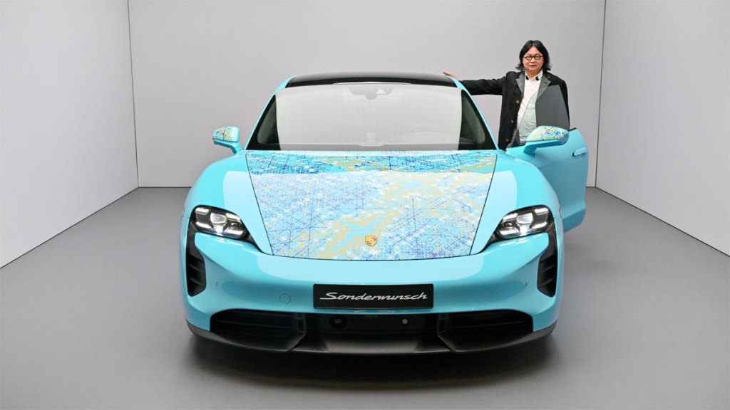 Las obras de arte cuelgan en museos, galerías y casas de coleccionistas privados. Pronto, una de ellas circulará por las calles de Shanghái. En el marco del programa “Sonderwunsch” de Porsche, se ha creado un coche extraordinario sobre la base de un Taycan Turbo S. Tanto la carrocería como el interior de la berlina deportiva están adornados con detalles del cuadro de Ding Yi “Aparición de Cruces 2022-2”.