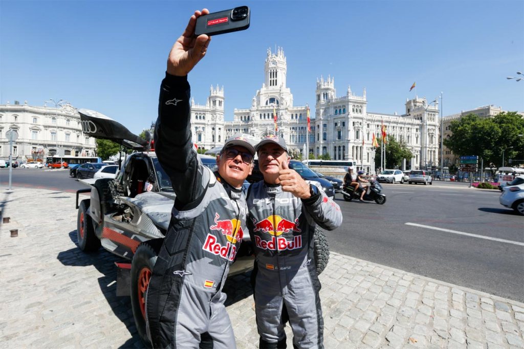 El recorrido comenzó en la Plaza de Toros de Las Ventas, inaugurada hace más de 90 años. Desde sus galerías subterráneas, Carlos Sainz y Lucas Cruz se adentraron en el interior del ruedo, donde el RS Q e-tron realizó una espectacular exhibición de drift demostrando la potencia de su sistema de propulsión eléctrico, que genera 263 kW (358 CV). Finalizado el espectáculo en Las Ventas, comenzó el paseo por las calles de Madrid. El RS Q e-tron pasó por la Puerta de Alcalá hasta llegar a la Fuente de Cibeles. Los pilotos se bajaron del coche para tomarse una foto como dos turistas más en la famosa fuente, rodeada por el Palacio de Buenavista, el Palacio de Linares y el Palacio de Cibeles. El siguiente punto del recorrido escogido como uno de los lugares destacados de Madrid fue la Fuente de Neptuno, donde el Audi RS Q e-tron deleitó al público con una serie de derrapes al típico estilo de los rallies. Desde allí, Sainz y Cruz condujeron por la Gran Vía, adentrándose en la zona de Madrid libre de emisiones gracias al sistema electrificado del coche con el que compiten en el Rally Dakar.