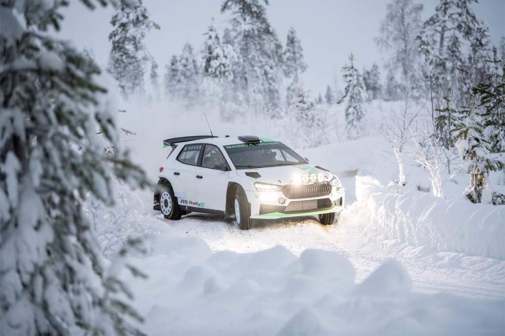Oliver Solberg, que recientemente ganó la categoría WRC2 en el Rallye de Suecia, pilotó el Škoda Fabia RS Rally2 en carreteras heladas de Escandinavia para probar las nuevas soluciones aerodinámicas y relaciones de transmisión más largas. “Nuestra segunda victoria consecutiva en los tramos de alta velocidad en Suecia demostró que el Škoda Fabia RS Rally2 ya es muy rápido. Pero para los equipos de clientes también es importante que el coche sea fácil de conducir y funcione perfectamente en una amplia gama de condiciones de carretera”, dice Solberg.