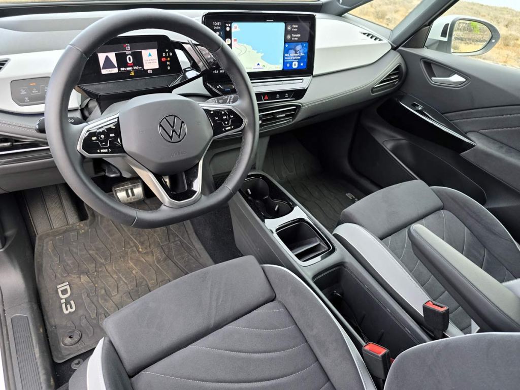 La segunda generación del ID.3 impresiona por su interior innovador y sostenible. En el interior se utilizan materiales de origen no animal. Para los guarnecidos de las puertas y los tapizados de los asientos se utiliza el material de microfibra Artvelours Eco, compuesto en un 71 % de material reciclado, una materia prima que se obtiene reciclando residuos plásticos que previamente han sido desechados al menos una vez.