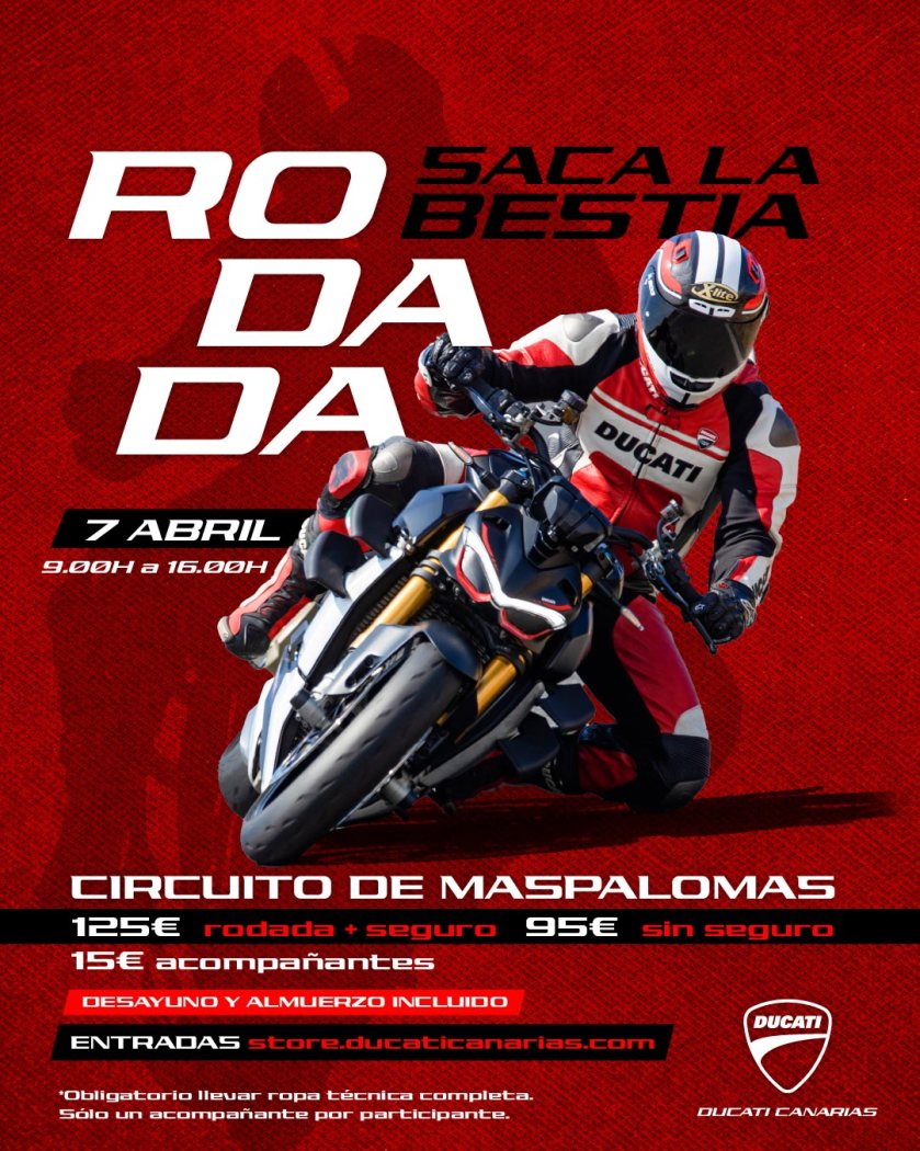 El próximo 7 de abril, Ducati Canarias celebra la primera rodada del año en el Circuito de Maspalomas
