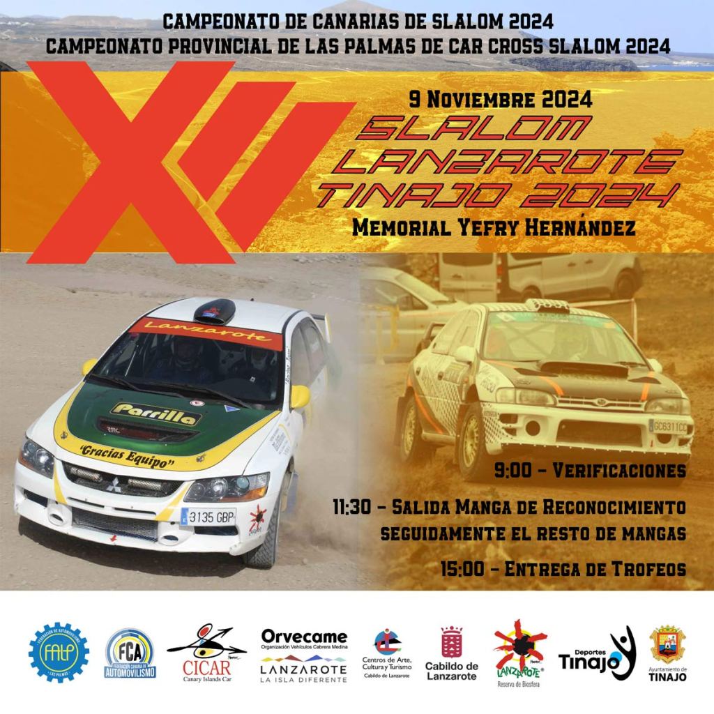 El Campeonato de Canarias de Slaloms en Tierra tiene su próxima cita en la isla de Lanzarote, con la prueba de Tinajo en memoria de Jefry Hernández, que se disputará el sábado 9 de noviembre bajo la organización del CD. Evesport y la colaboración del Ayuntamiento de Tinajo y el Cabildo Insular.