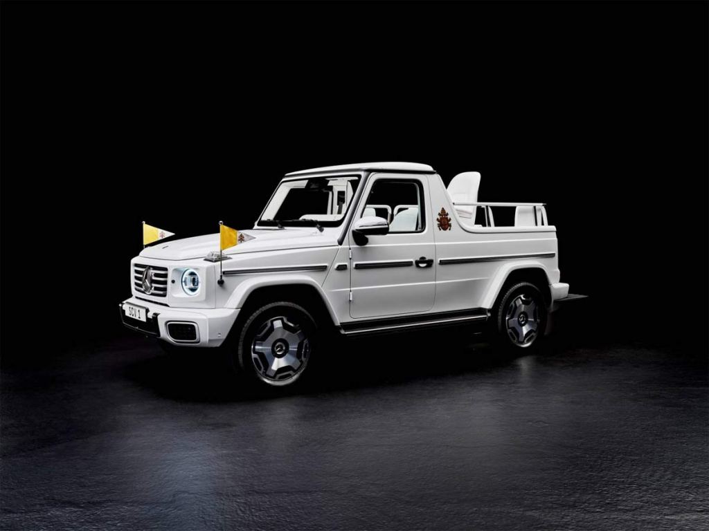 Mercedes-Benz suministra coches al Vaticano desde hace 97 años y, desde hace 45, el Papa utiliza los famosos “papamóviles” basados en el Clase G de Mercedes-Benz. Ahora, por primera vez, el Papamóvil de Mercedes-Benz será totalmente eléctrico: Ola Källenius, CEO de Mercedes-Benz, y los miembros del equipo implicados han entregado hoy personalmente al Papa Francisco en el Vaticano un vehículo único fabricado a mano y basado en el Clase G eléctrico.