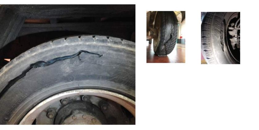 AECA-ITV ha recopilado algunas fotografías que han tomado inspectores de los más de 400 centros de ITV que hay en el país y que evidencian el estado de los neumáticos con los que algunos vehículos se presentan a los centros.