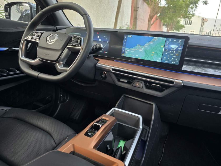 En el habitáculo, el Torres EVX apuesta por la modernidad con una doble pantalla de 12,3 pulgadas que integra el cuadro digital y el sistema multimedia. La consola central flotante y los múltiples huecos portaobjetos destacan por su funcionalidad, mientras que los acabados, sin ser premium, resultan sólidos y actuales.