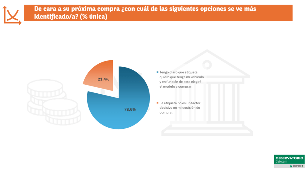 La etiqueta medioambiental es un factor clave de compra: ocho de cada diez españoles (78,2% en vehículo nuevo y 76% en usado) declara que tiene claro que etiqueta quiere que tenga su coche, y en función de eso elegirá el modelo a comprar.