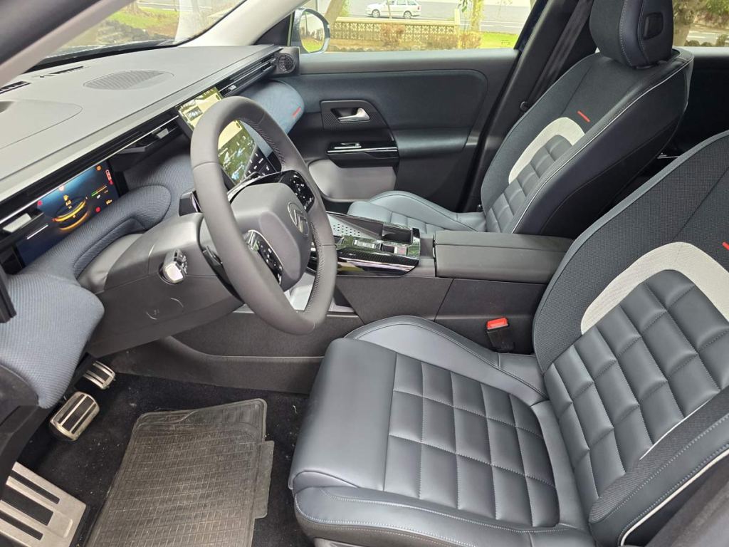 La iluminación ambiental, con ocho colores diferentes, refuerza la calidez del interior y subraya la horizontalidad del salpicadero. También se integra en los tweeters, las puertas y la consola central. Los detalles de color en salpicadero y asientos evocan los color-clips exteriores, aportando coherencia estética.