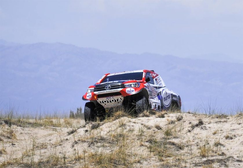 Al-Attiyah logra su tercera victoria de etapa, Sainz administra su ventaja En el punto de mira… La llegada a la región de San Juan no ha sido un camino de rosas para los pilotos, que se han enfrentado hoy a la especial más larga del rally con 523 km de lucha contra el reloj. Una mezcla de arena, pistas rápidas y tramos pedregosos que ha exigido resistencia y mucha atención a los pilotos, cuyos cuerpos se resienten sobremanera tras doce agotadores días de competición. Nótese que la climatología adversa y los problemas de seguridad han obligado a los organizadores a anular la etapa en las categorías de motos y quads. Lo esencial Situado a más de una hora de Carlos Sainz en la general, Nasser Al-Attiyah sabe bien que, salvo sorpresa mayúscula, no se adjudicará su tercer Dakar. Pero eso no ha impedido al piloto de Toyota salir con las pilas puestas esta mañana y deleitarnos a todos con una exhibición que le ha valido su tercera victoria de etapa desde la salida de Lima, …