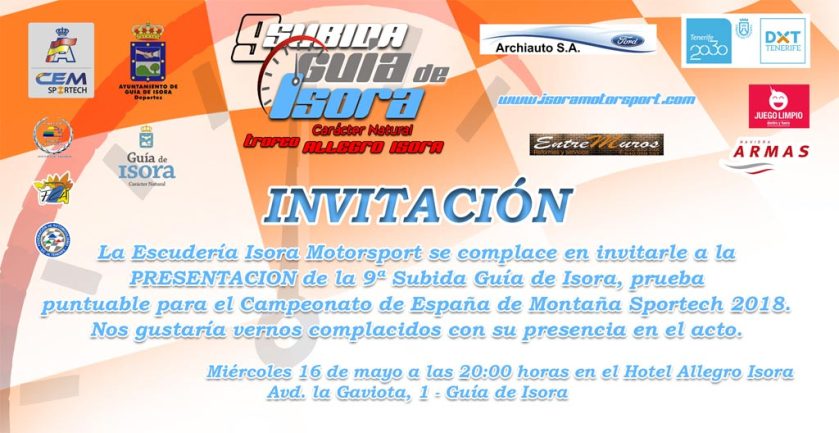 Presentación este miércoles 16 de mayo, en el Hotel Allegro Isora.