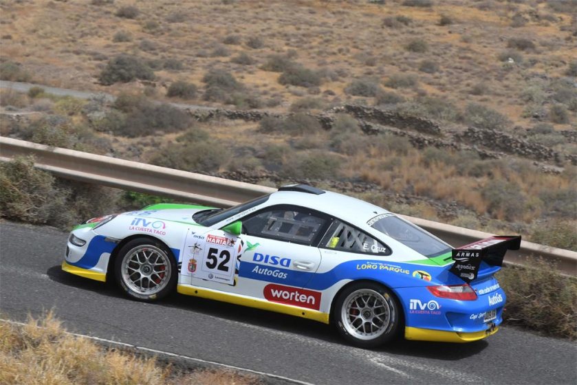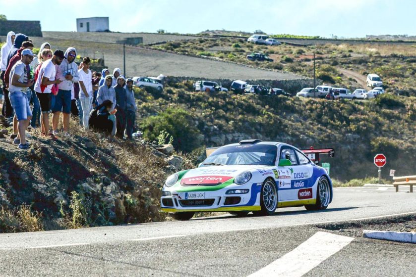 En la exigente rampa de Haría, en la isla de Lanzarote, el piloto Enrique Cruz alcanzaba hoy sábado